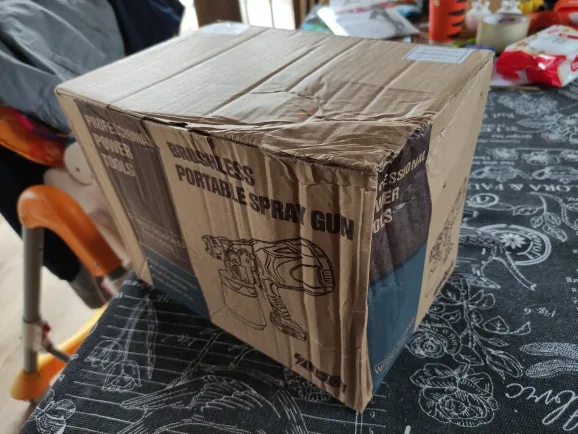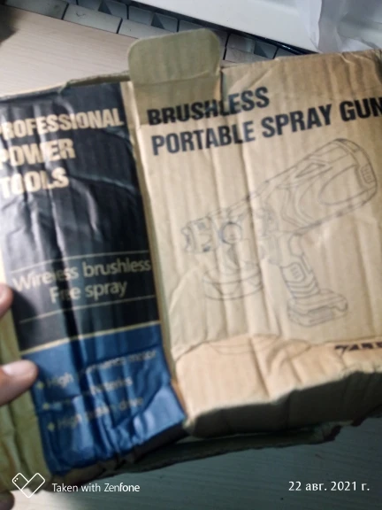 Доставка быстрая СДЭКом до дома. Коробка была немного помята, но содержимое не пострадало. Агрегат работает, воздухом плюется, с краской пока не проверяли. Имеется инструкция на английском и бумага на немецком :D