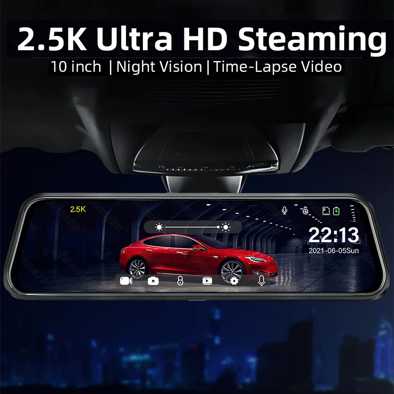 10 дюймовый Ультра широкоугольный full view сенсорный экран, номерных знаков, дорожных знаках, а также другие важные детали в дороге. Очень четкий и плавный показ изображения, как поток, протекающий на превосходном WDR и автоматическом регулировании яркости потокового зеркала.