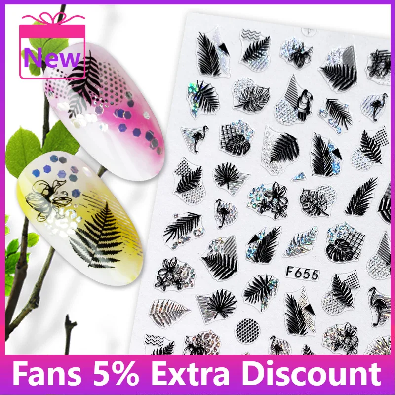 Наклейки для ногтей, переливающиеся, черные, белые, летние, 1 шт.