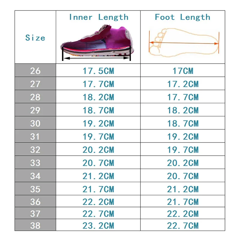 Перед заказом, пожалуйста, Измерьте длину стопы вашего ребенка и выберите правильный размер. 1. Пожалуйста, не измеряйте длину стельки, это не длина стопы. 2. При измерении длины стопы, поэтому, пожалуйста, добавляйте еще один длиной около 0,5 см. Ребенок быстро растет, и мы скорее выберем обувь на размер больше. 3. Выберите правильный размер в соответствии с нашей таблицей размеров. Размер соответствует длине стопы: Размер E26: 17 см, размер E27: 17,2 см, размер 28: 17,7 см, Размер 29: 18,2 см, размер 30: 18,7 см, размер 31: 19,2 см, размер 32: 19,7 см, Размер 33: 20,2 см, размер 34: 20,7 см, размер 35: 21,2 см, размер 36: 21,7 см, размер 37: 22,2 см, размер 38: 22,7 см