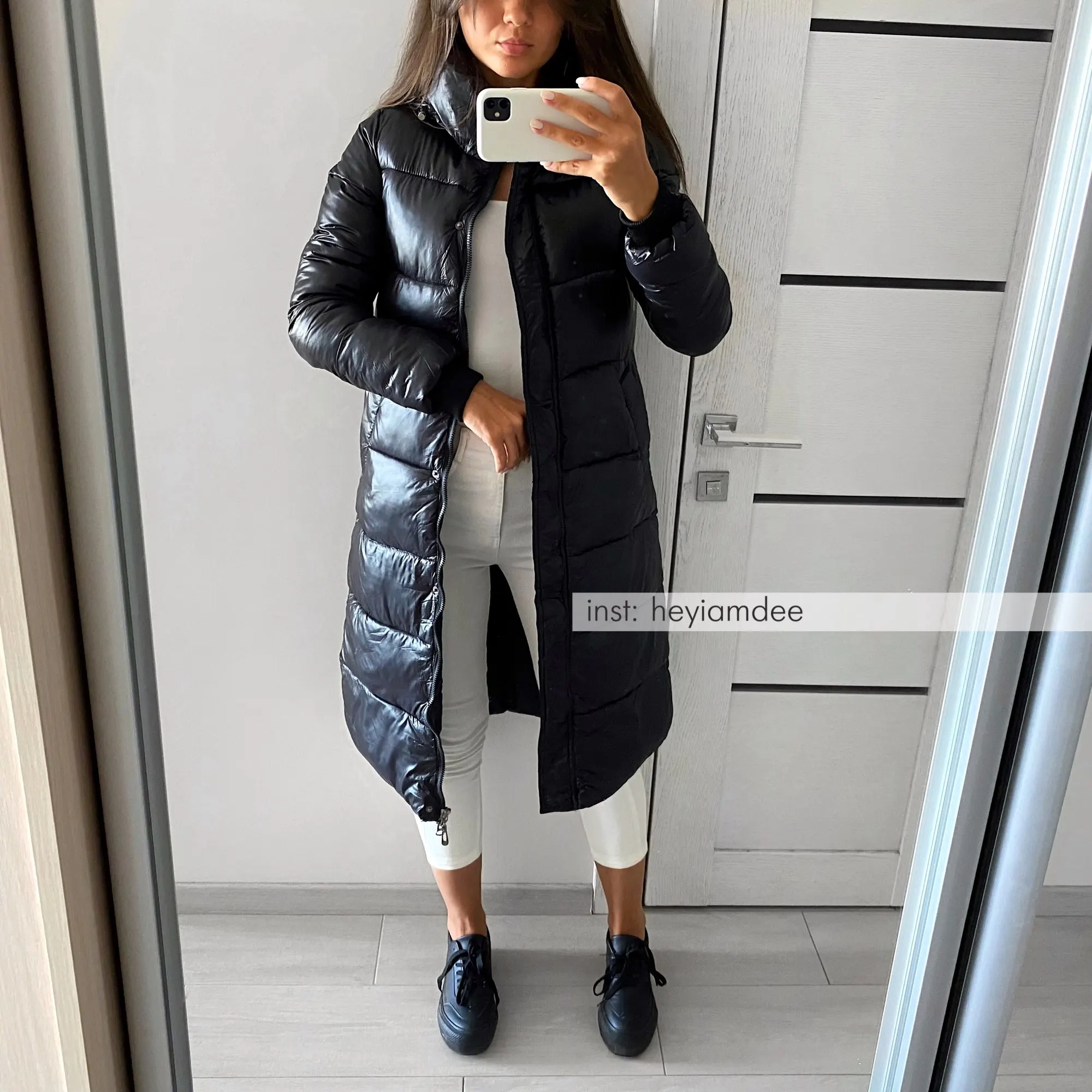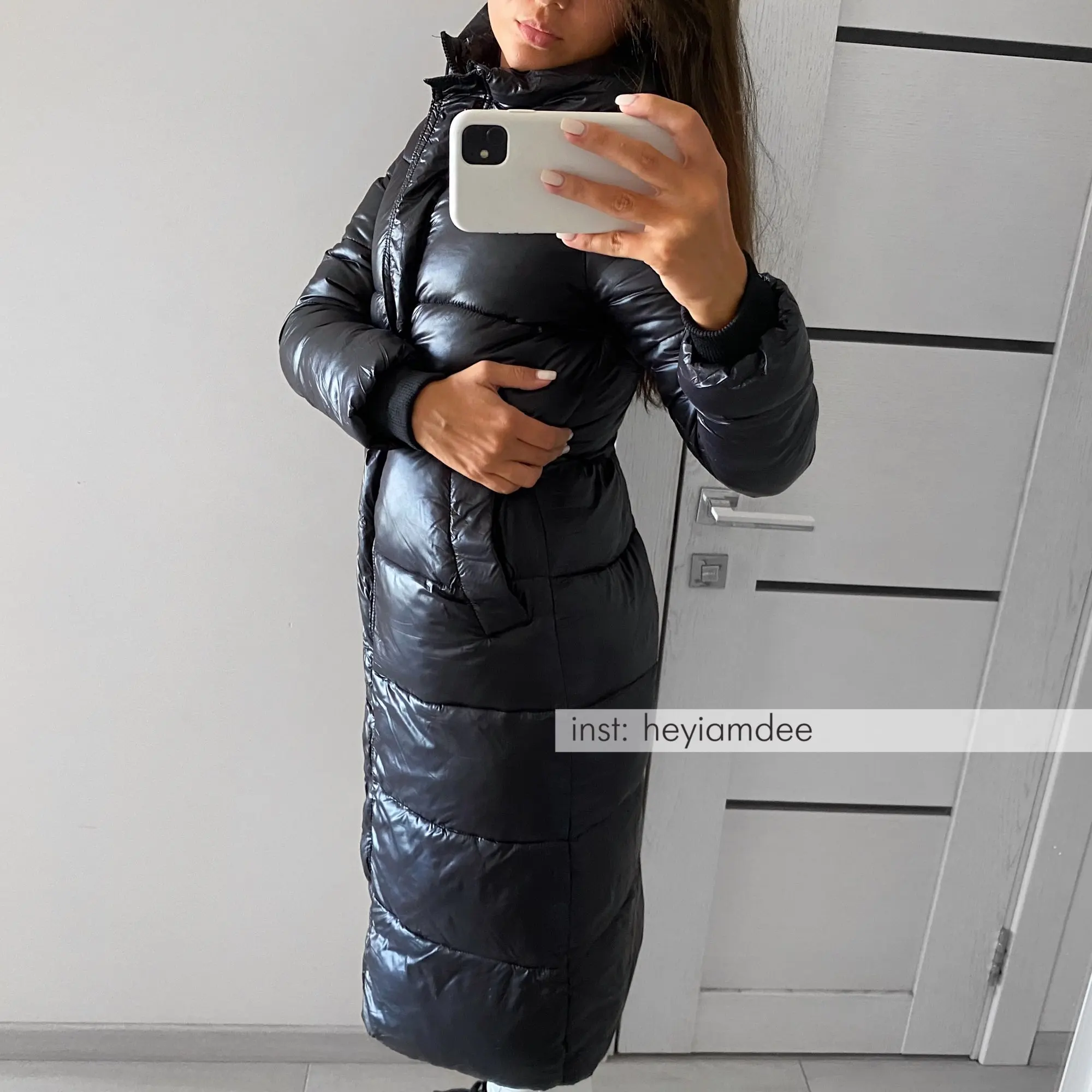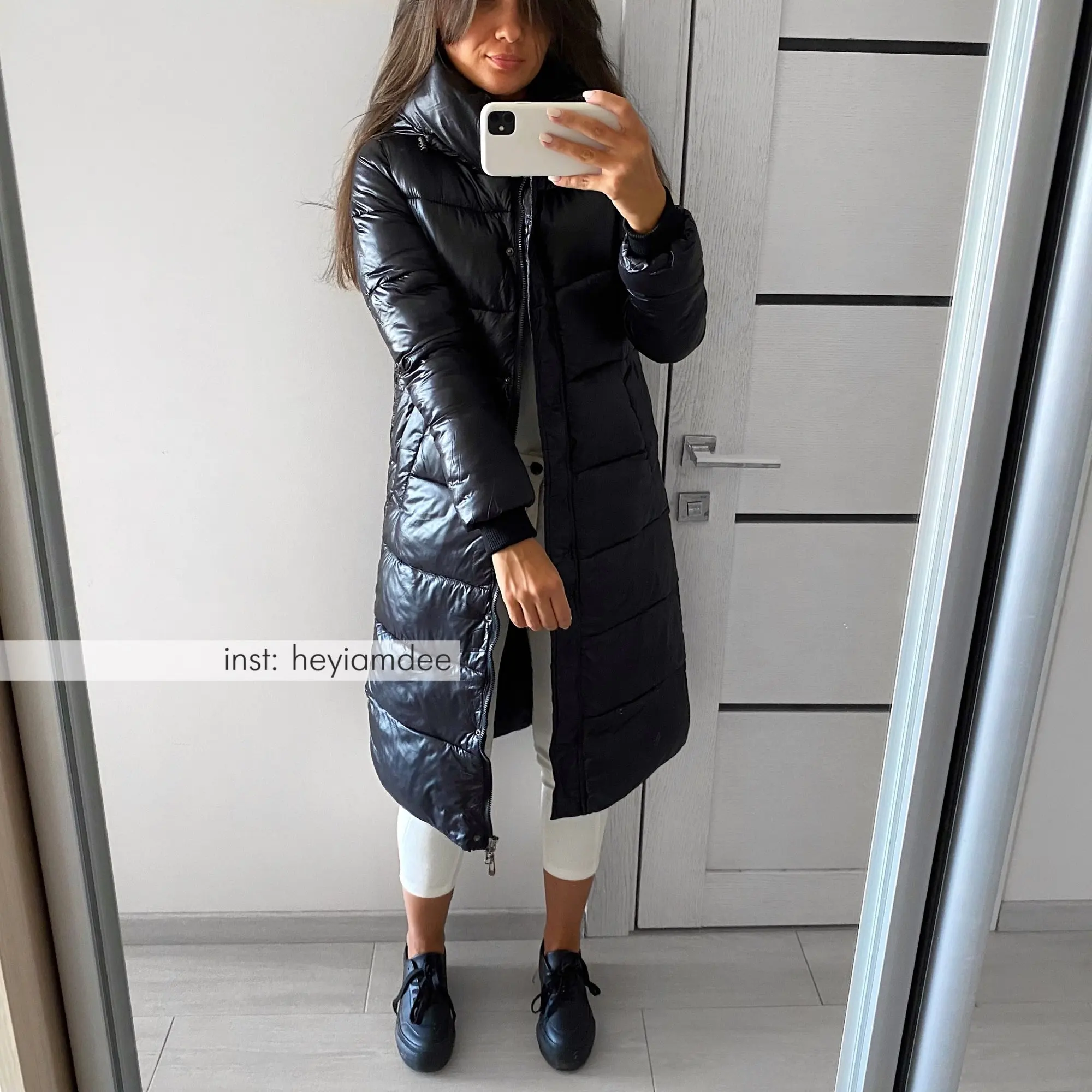 Черная глянцевая парка, Женское пальто 2021, модная Утепленная зимн...