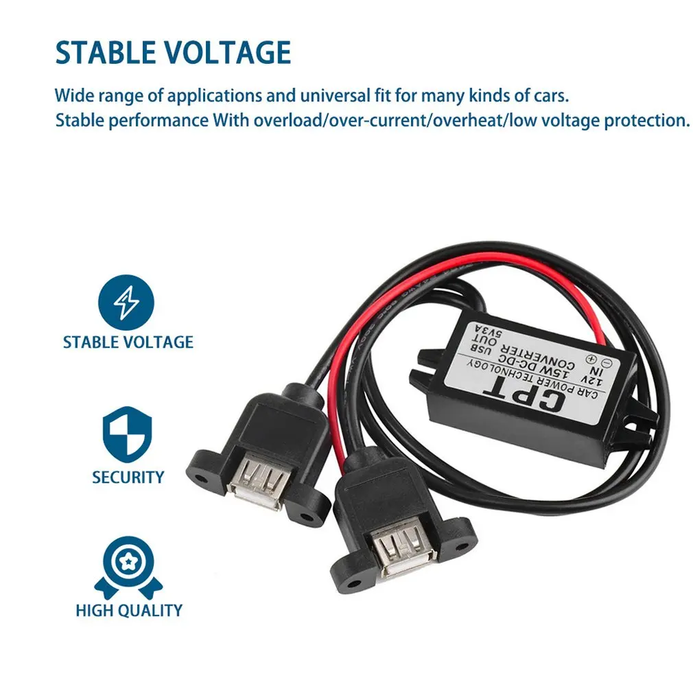 1 x модуль преобразователя постоянного тока от 12 В до 5 В, 3 А, 15 Вт, двойной выходной USB-адаптер питания