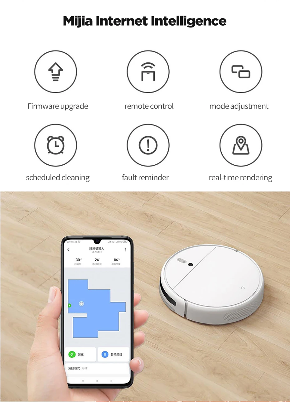Обновление онлайн прошивки OTAПостоянно освежающие Обучающие способности, чем больше вы используете, тем умнееБольшая емкость литиевой батареи120m2 подметание комнатыНизкая батарея Автоматическая перезарядкаКогда сумма автоматической перезарядки составляет менее 15%,Аккумулятор вернется к точке останова для самостоятельного восстановления.