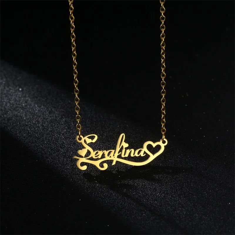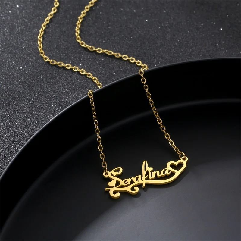 Ожерелье с именем на заказ из нержавеющей стали с золотым наполнением