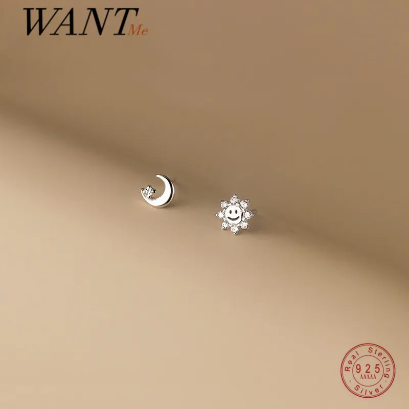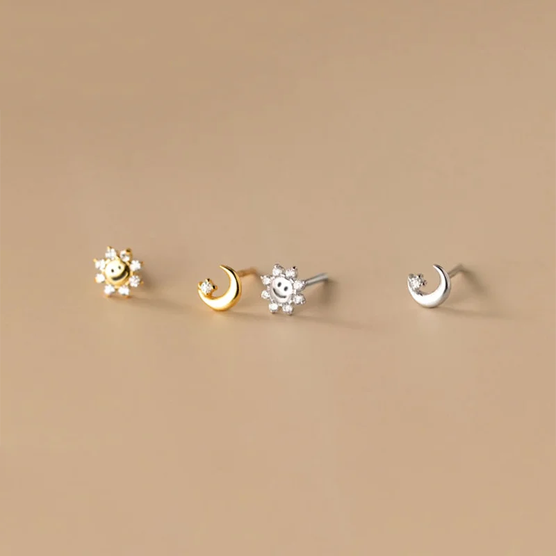 Серьги-гвоздики женские из серебра 925 пробы, со звездами, луной, п...