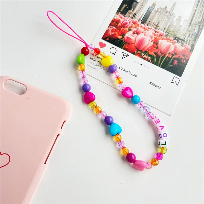 Модные модные цветные акриловые бусины ремешок на цепочке для мобил...