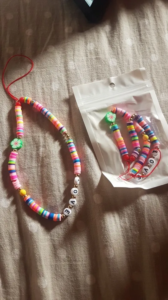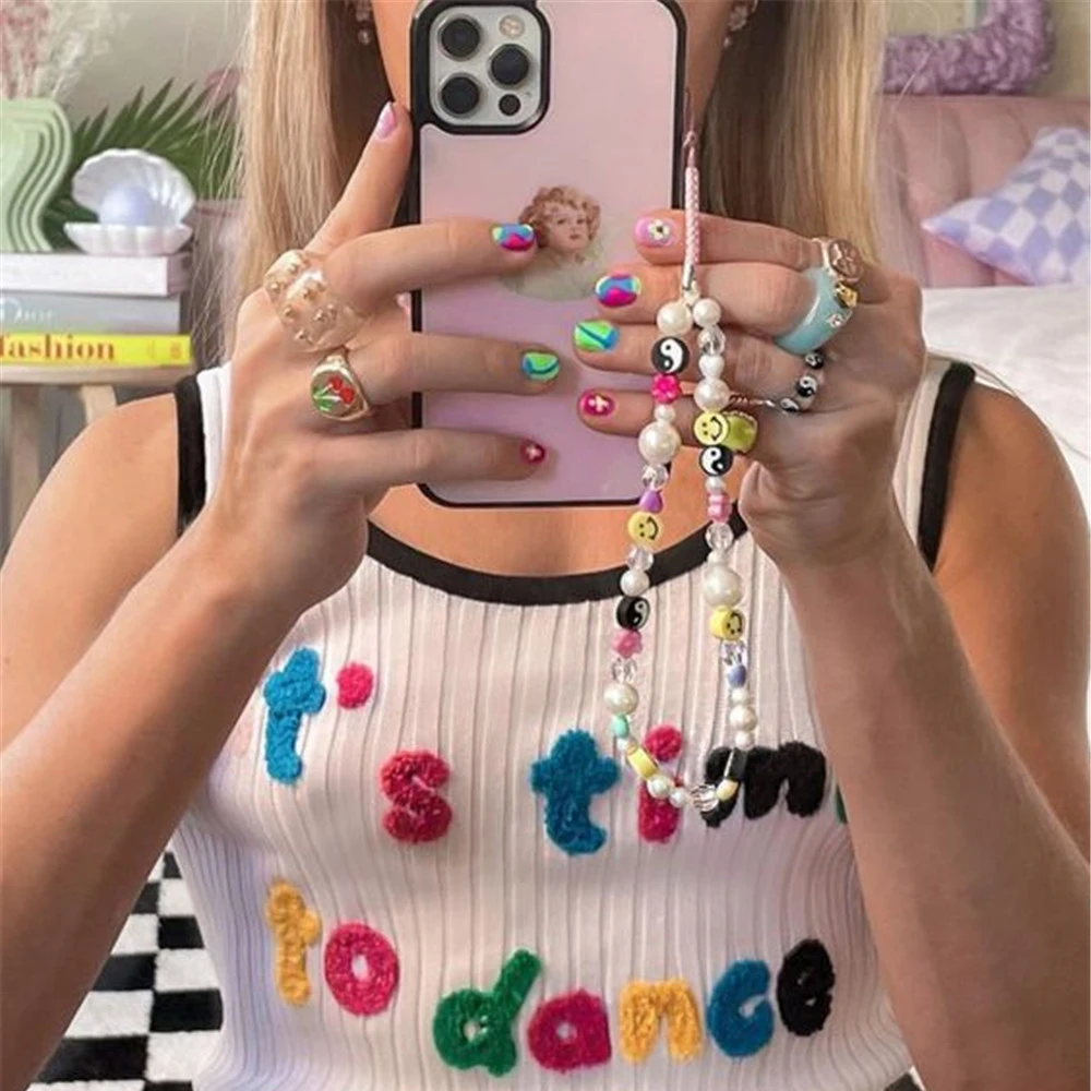 Цепочка Женская, цветная, из акрилового шнура, с улыбающимися бусинами, 2021, мобильный телефон
