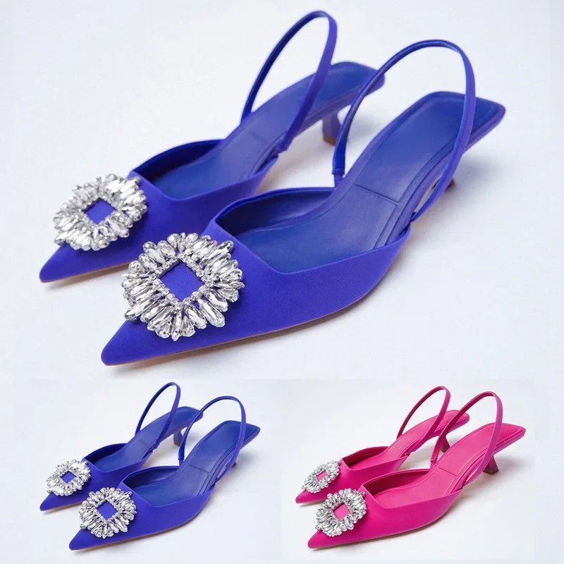 Модные женские босоножки со стразами с острым носком, женские босон...