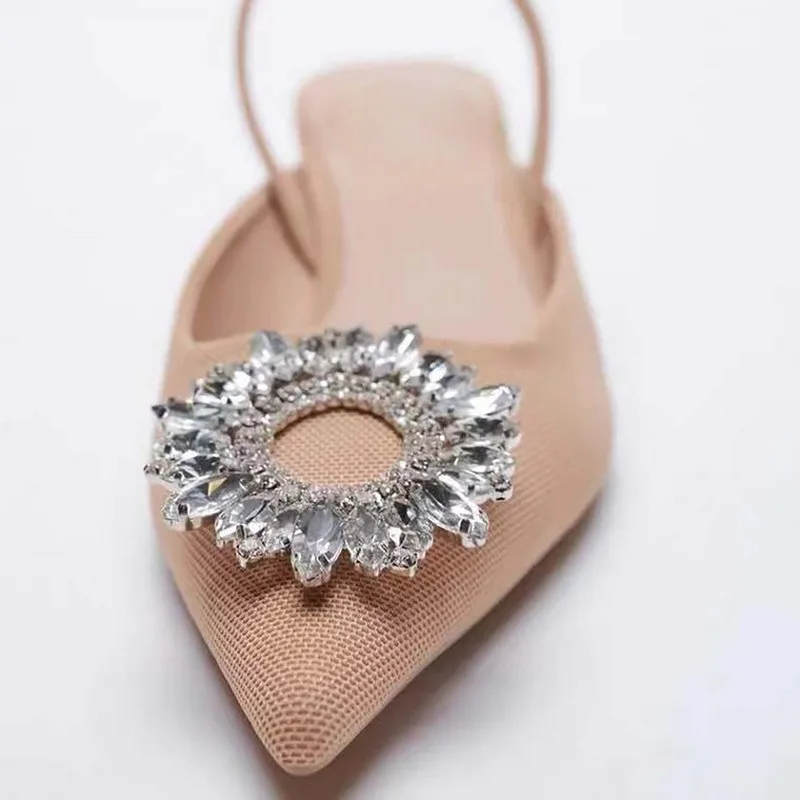 Туфли стразы женские с ярким украшением, заостренный носок, низкий ...