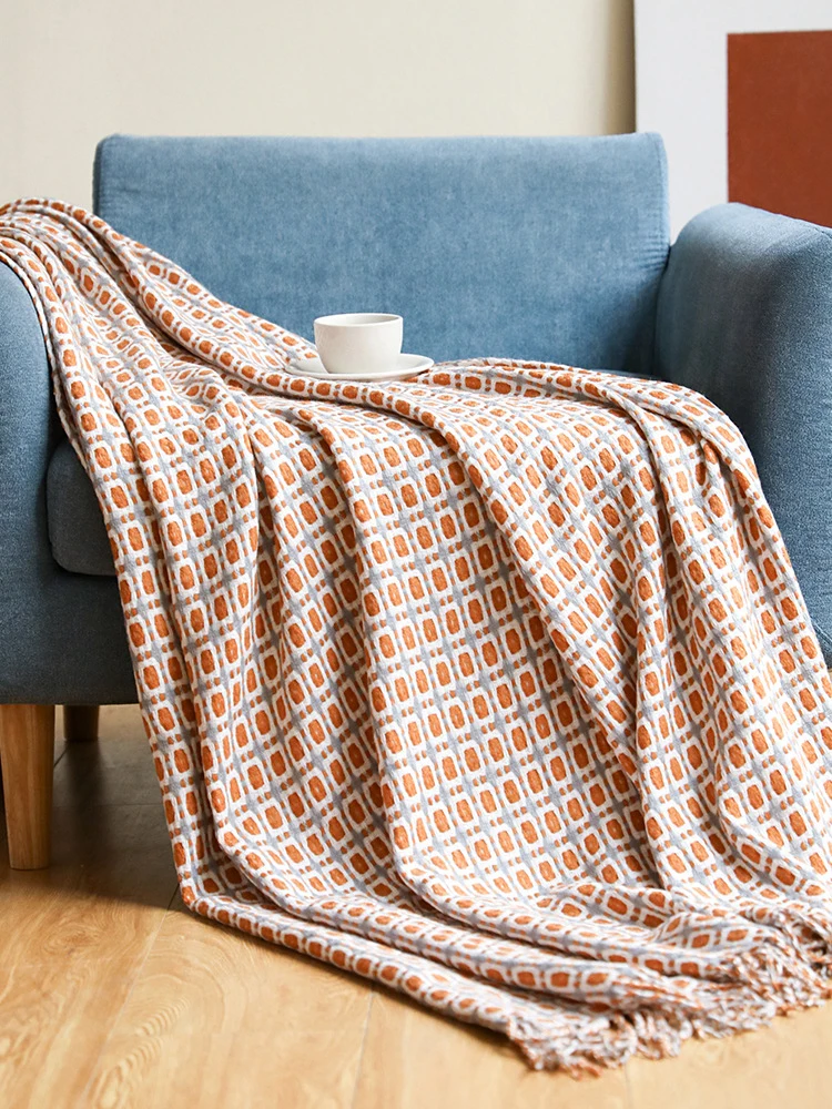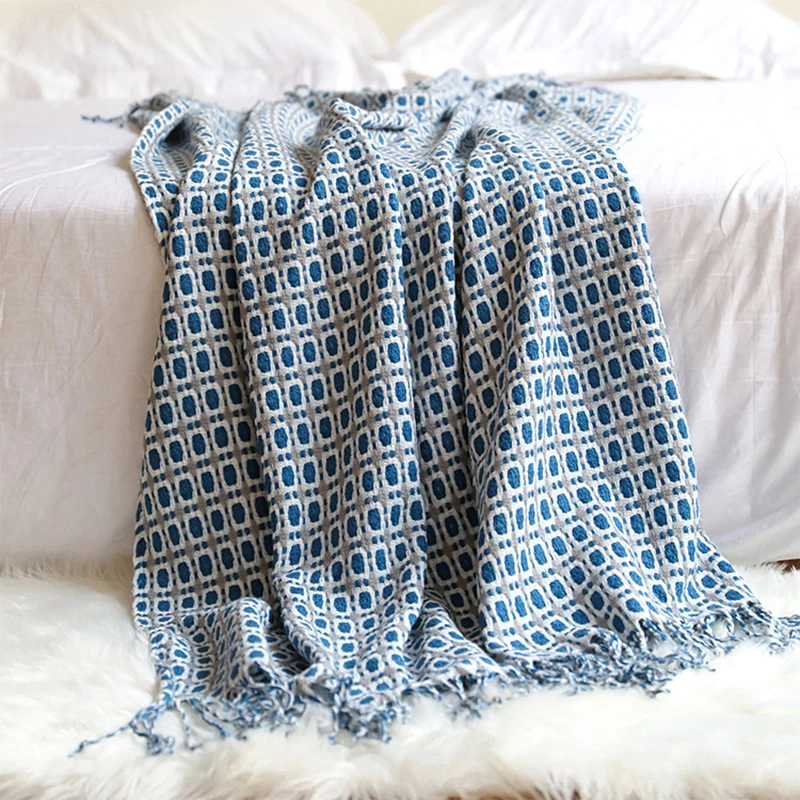 Вязаное одеяло в скандинавском стиле, дорожное одеяло, плед цвета хаки для кровати, дивана, плед с кисточками, винтажное тонкое летнее одеяло для кондиционера s