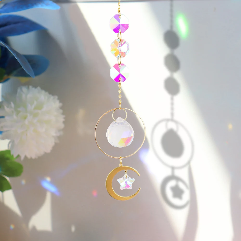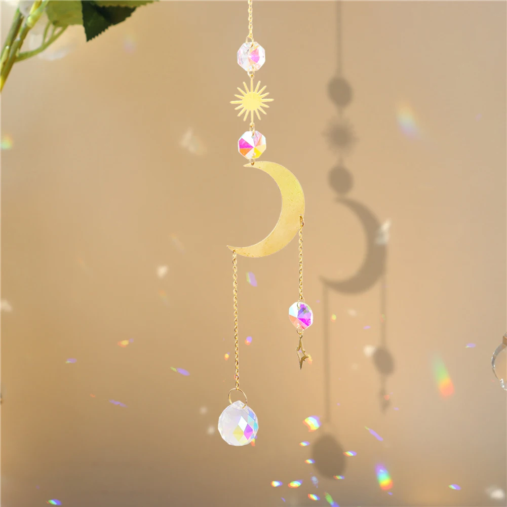 Звезда Луна солнце хрустальные призмы подвесные радужные освещение аксессуары для окна шторы для дома сада декор подарки