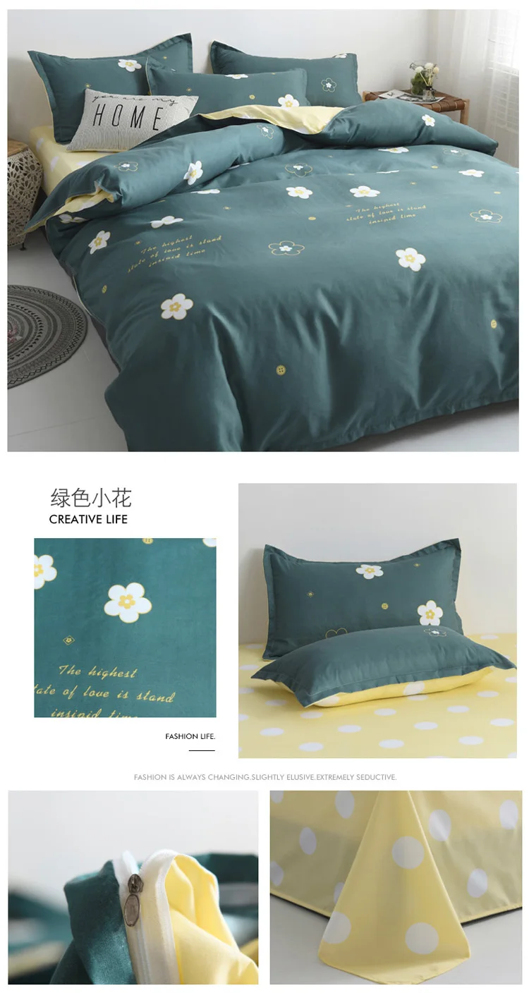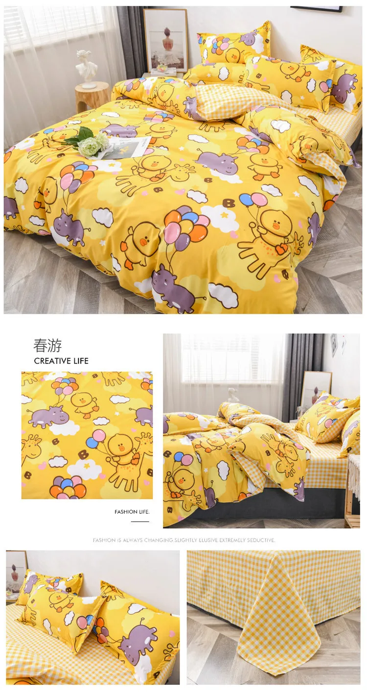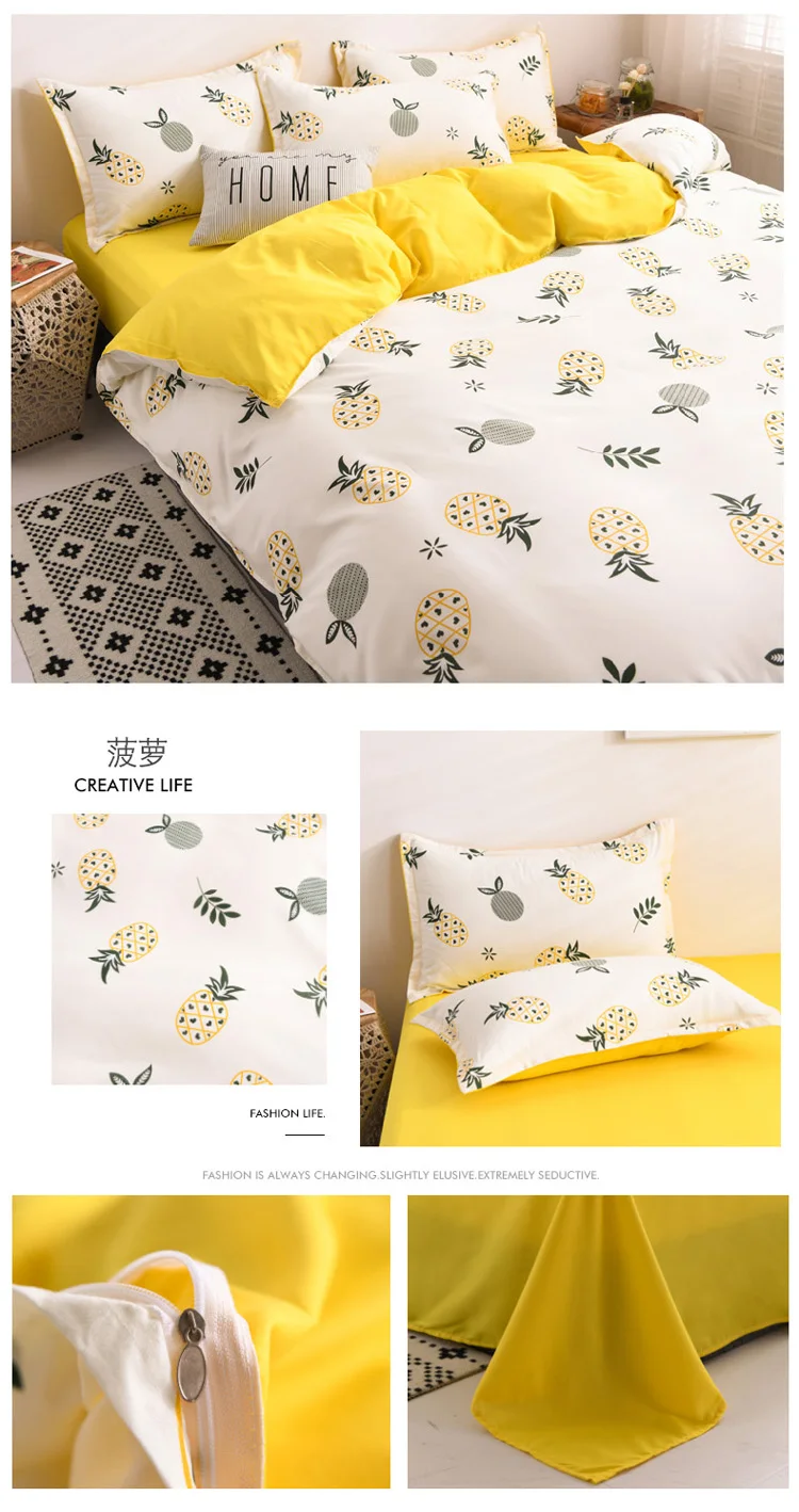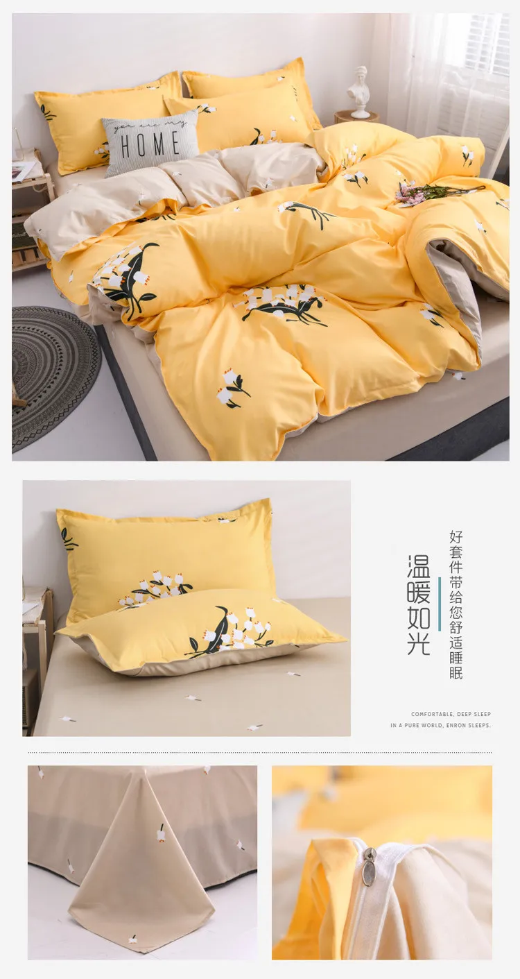 Ткань: полиэстерПроцесс: окрашенная пряжа, печать и окрашиваниеСостав: чехол для подушки + пододеяльник + простыня