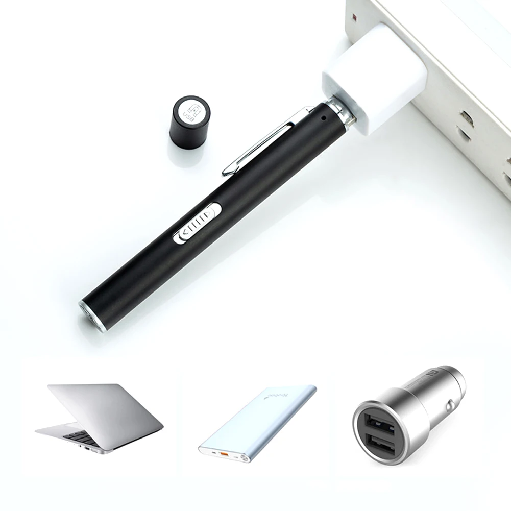 USB Перезаряжаемый из нержавеющей стали, 2 режима, светодиодный фонарик, зажим, ручка, портативный фонарик, осмотр для стоматолога, кемпинга, ухода