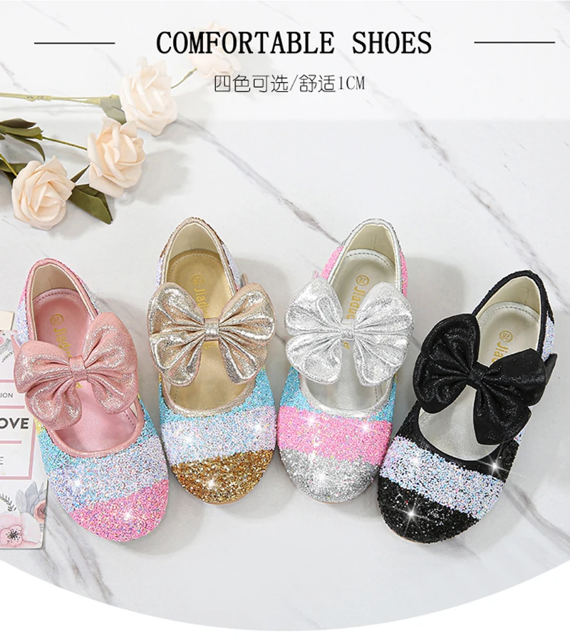 Кожаные туфли для девочек, детские туфли принцессы с бантом, туфли с круглым носком на мягкой подошве, большие искусственные туфли принцессы с кристаллами для вечерние