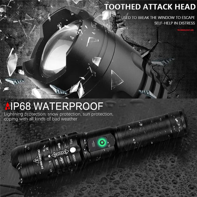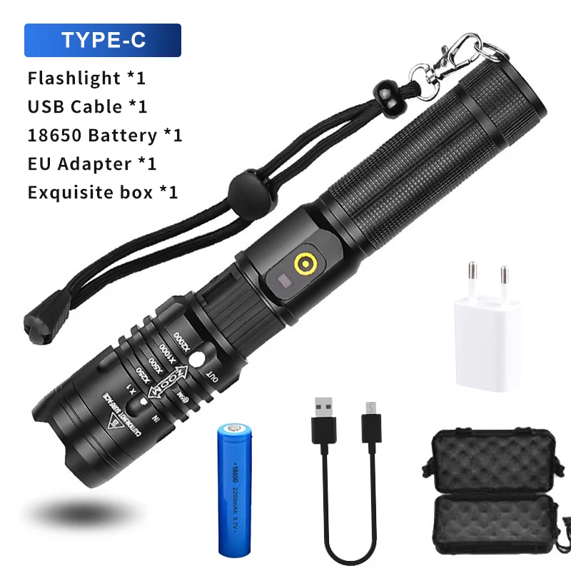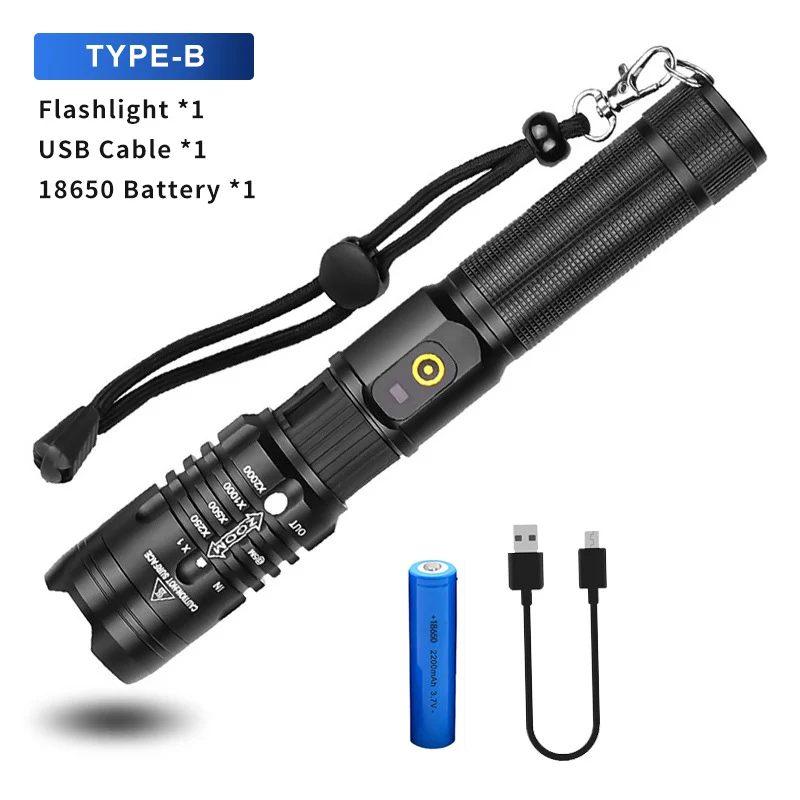 Сверхмощный светодиодный фонарик XHP50, масштабируемый ручной фонарь, водонепроницаемый фонарик, USB, перезаряжаемый, ультра яркий фонарь для охоты, кемпинга