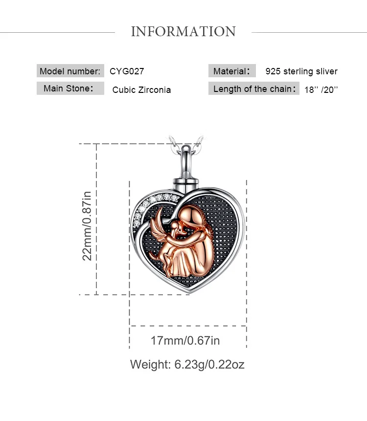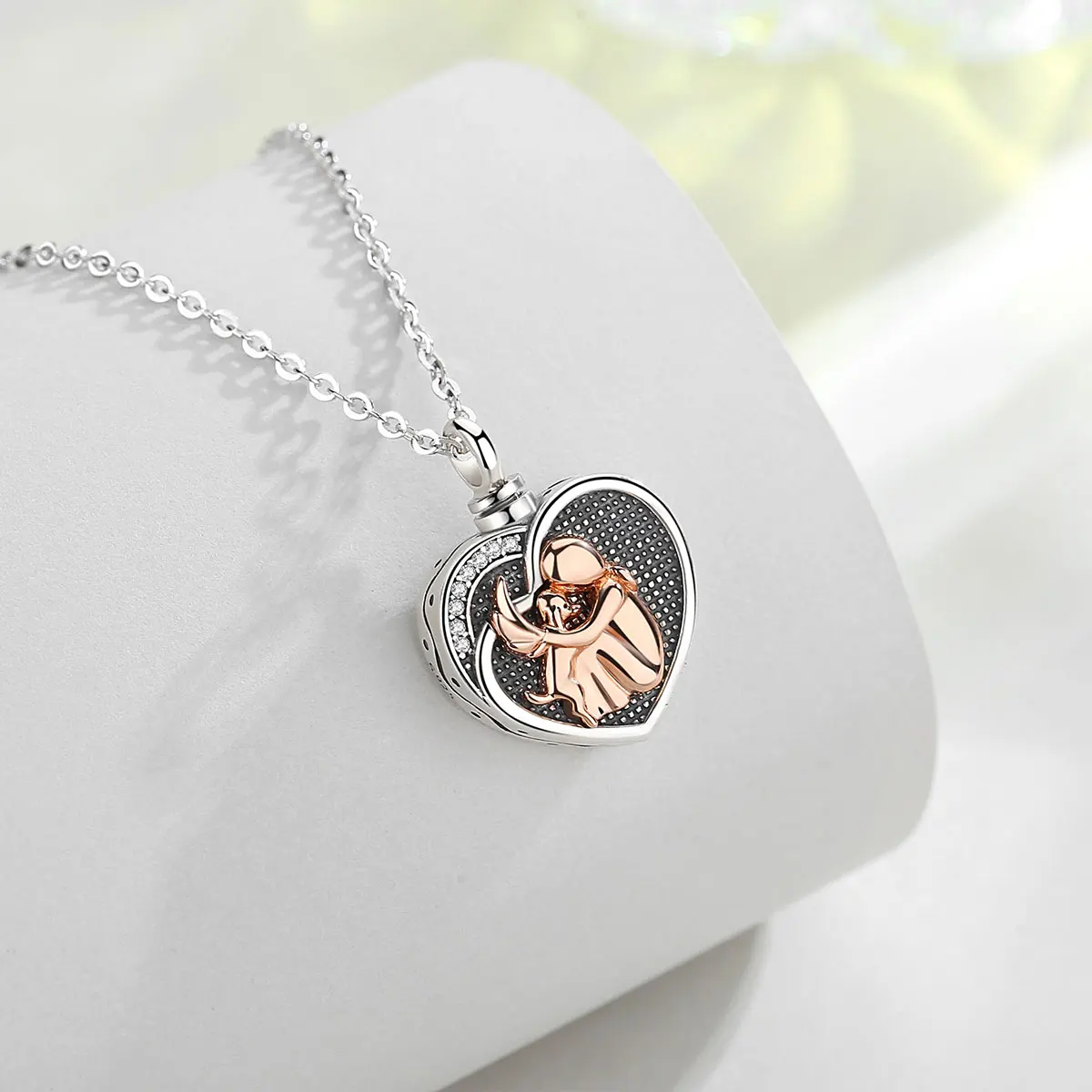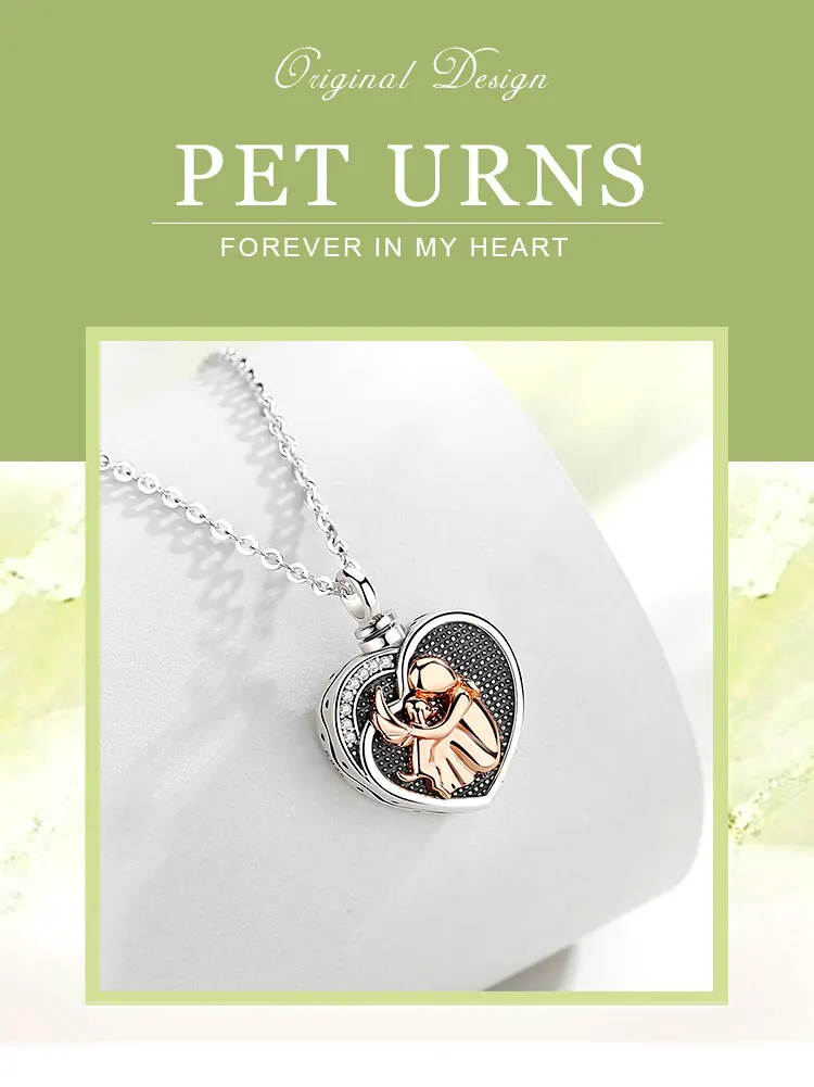 Памятный кулон для кремации Eudora, серебряная девушка и собака, розовое золото, подвеска для праха, урны, сердца, ожерелье с сердцем, ювелирные изделия, keepsake G027