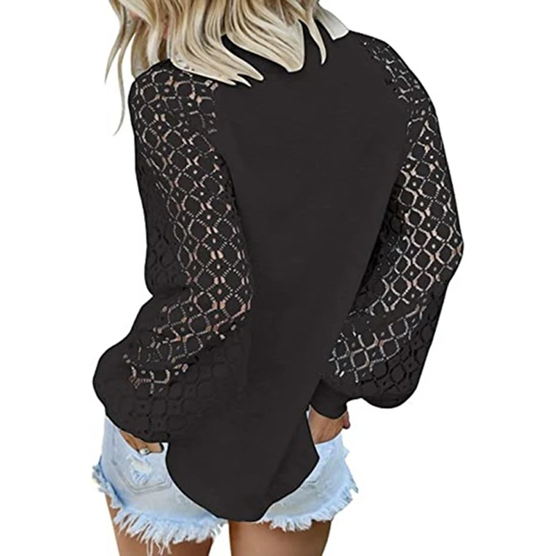 Элегантная кружевная Лоскутная Блузка с длинным рукавом, Женская винтажная блузка с круглым вырезом, однотонные топы на осень, Женская Повседневная Уличная блузка