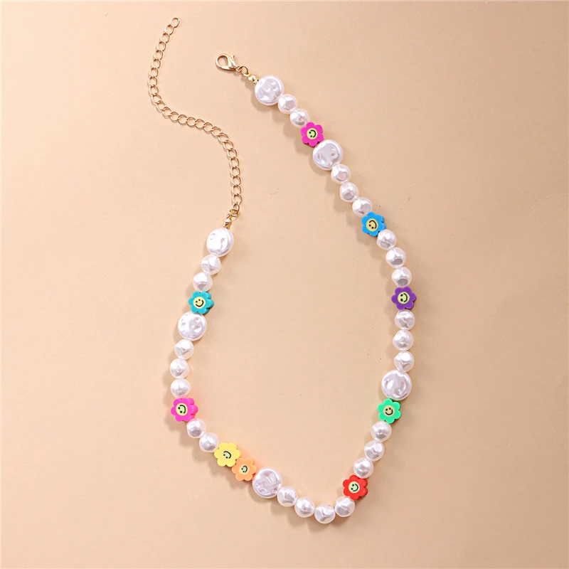 Разноцветные жемчужные ожерелья CANNER с улыбающимся лицом в Корейском стиле для мамы, девушки, жены, подарка на день рождения, милый цветочный чокер, ожерелье, ювелирные изделия