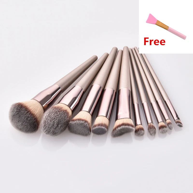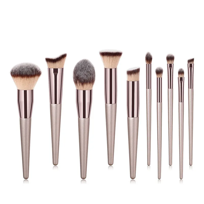 10PCS шампани цвета практические кисти макияж установить мягкие щетки щетки косметика кисти макияж художник инструмент полный набор кисти макияж , 10 шт.
