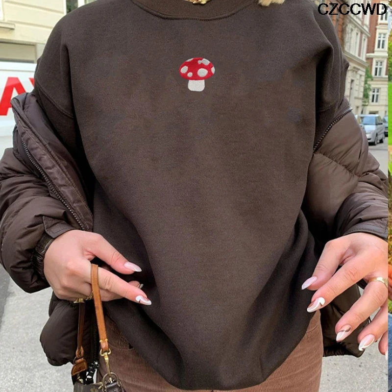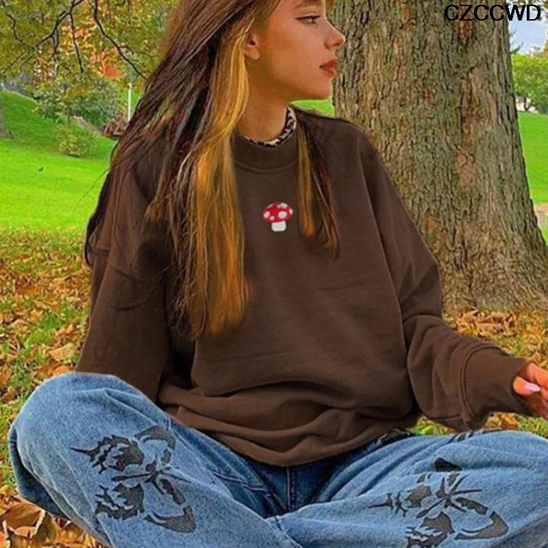 Модные свитшоты Y2k в стиле Харадзюку с вышивкой в виде Инди и гриб...