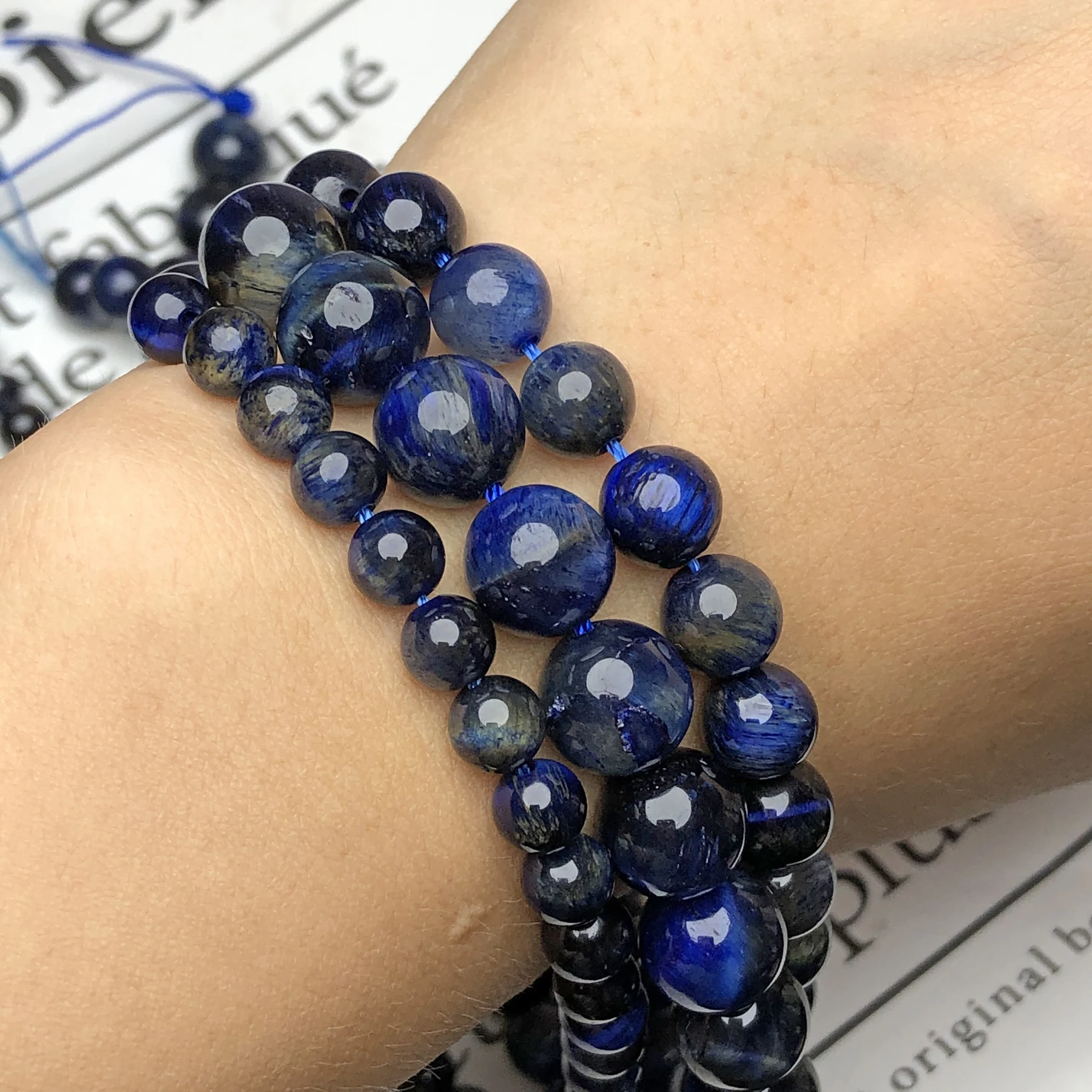 AAA + натуральный камень, Синий Кианит, двухцветные тигровые глаза, бусины, круглые свободные бусины-разделители, драгоценные камни, искусственные бусины, ожерелье, браслет