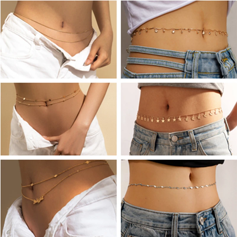 Цепочка на живот женская с жемчужинами, богемное ювелирное изделие с бабочкой, звездой, полумесяцем, кисточками, в форме сердца, ручная работа, аксессуары для девушек