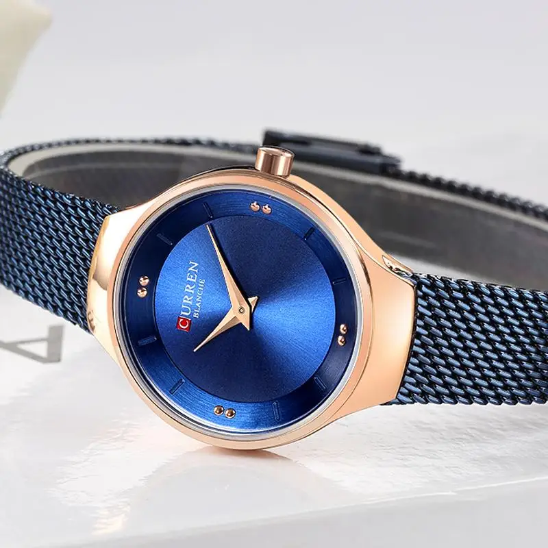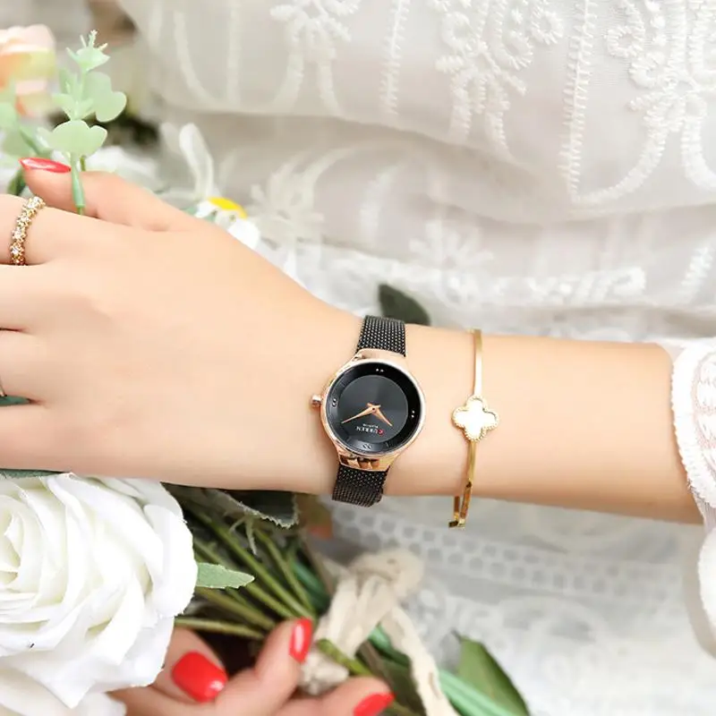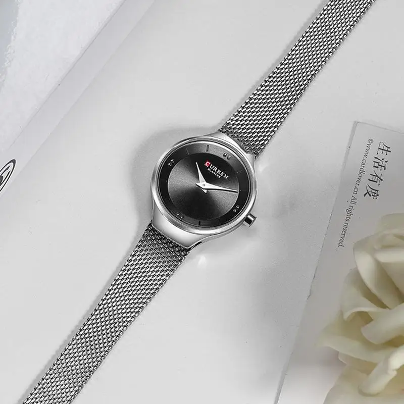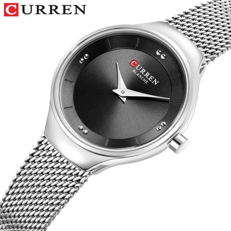 Часы Curren женские кварцевые с сетчатым браслетом, элегантные модные простые наручные, из нержавеющей стали