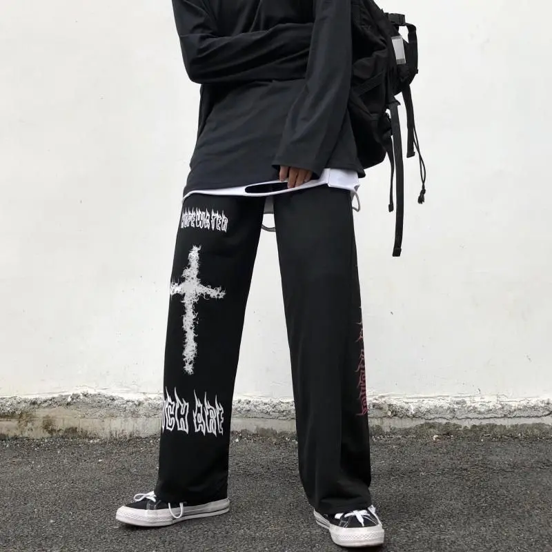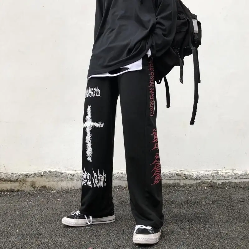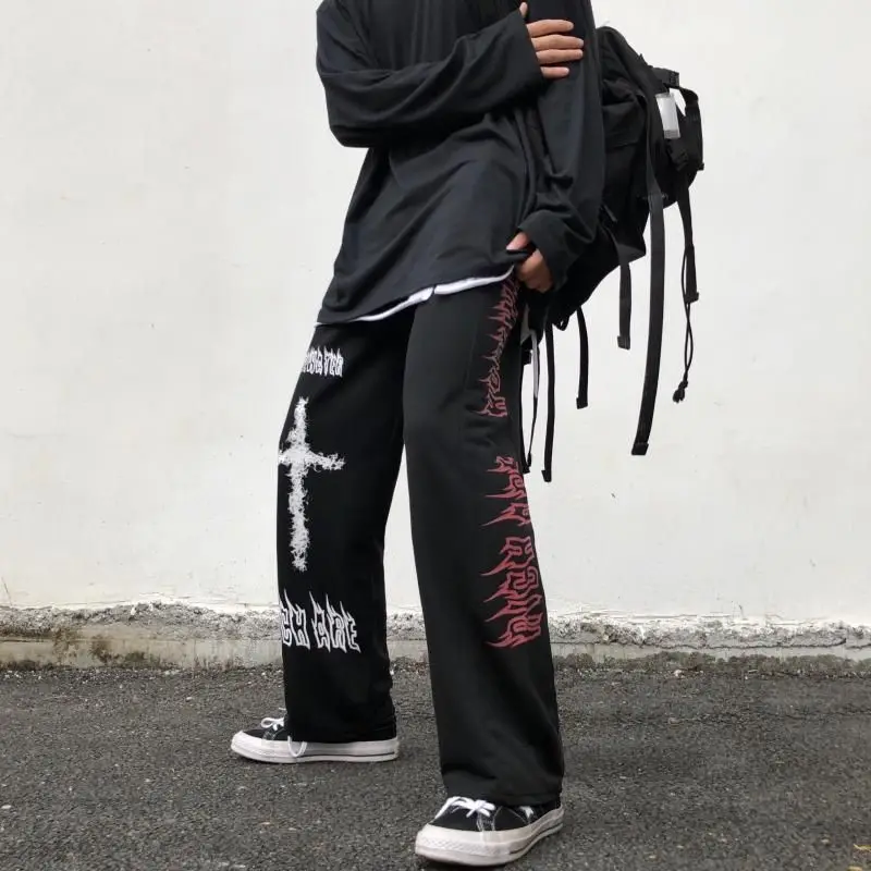 Спортивные брюки, весна-осень 2021, корейские, Харадзюку, японские светильник ящиеся, уличные, темные, Abi, граффити, прямые, широкие брюки для мужчин и женщин
