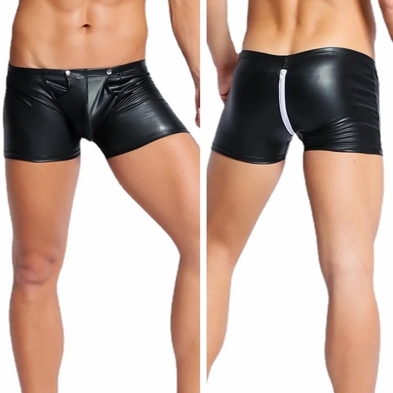 Сексуальные мужские трусы-боксеры из искусственной кожи, съемные Гей Трусы с застежкой-молнией сзади, Эротическое нижнее белье