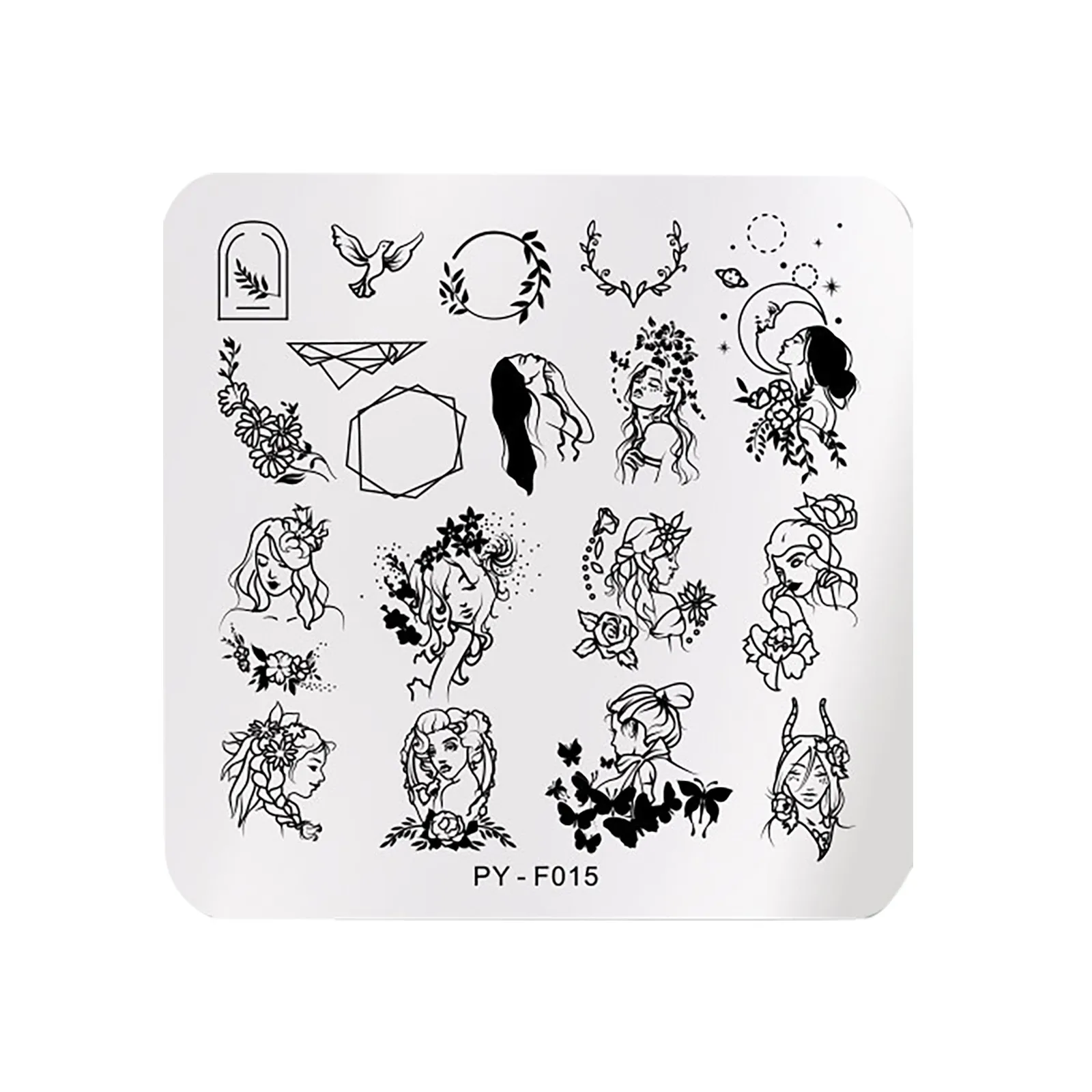 Пластина для стемпинга, различные стили трафаретов, наклейки для дизайна ногтей, милый цветок, набор для дизайна ногтей из нержавеющей стали
