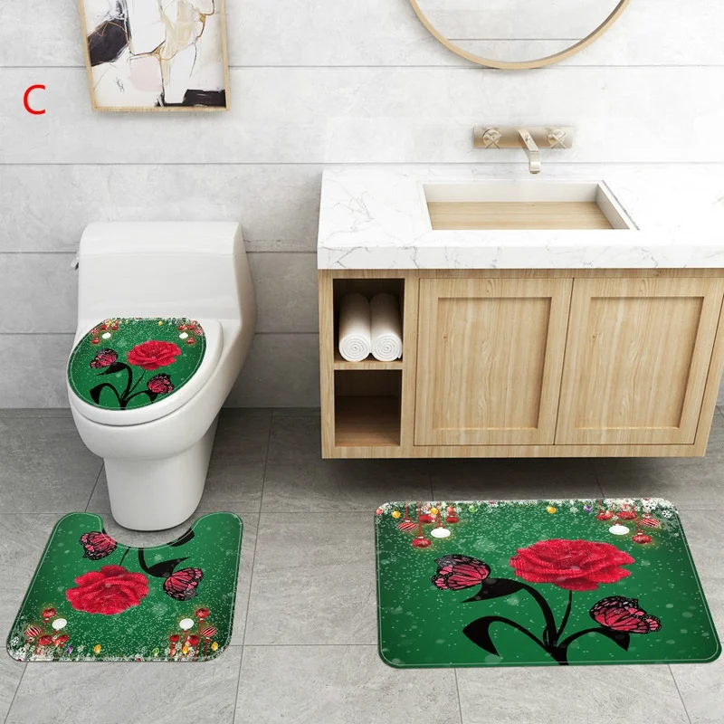 4 шт. рождественские шторки коврик для душа наборы Нескользящие ков...
