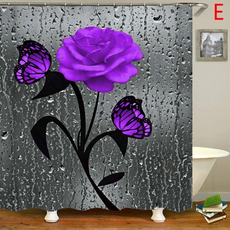 Набор прочных занавесок для душа с розовыми цветами, Водонепроницае...