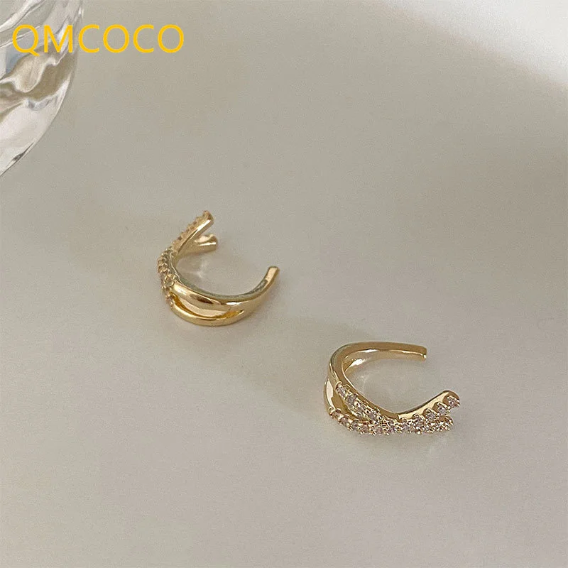 QMCOCO, яркий цвет, простой крест без отверстия для ушей, клипса для ушей, женская мода, темпераментные циркониевые серьги, ювелирные изделия