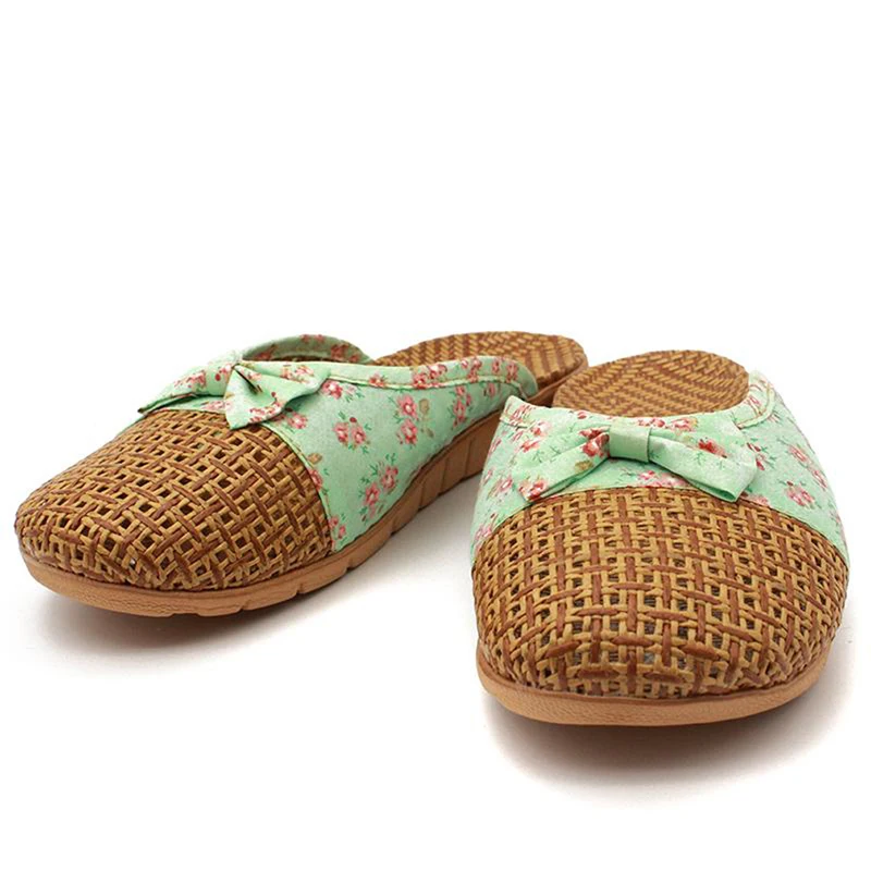 Сандалии женские из натурального бамбука и ротанга, мягкая льняная домашняя обувь, плетеные Повседневные тапочки, лоза, трава, летние