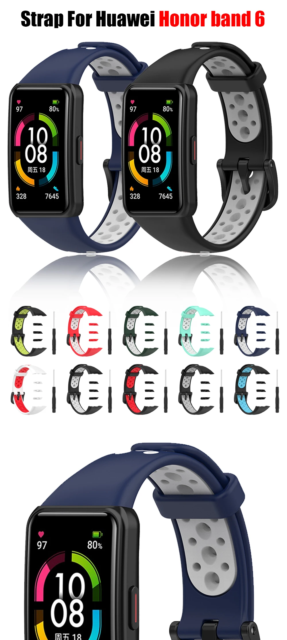 Ремешок для часов Huawei Band 6, силиконовый, дышащий, двухцветный,...