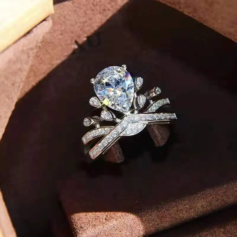 Кольцо с муассанитом женское, серебряное Ювелирное Украшение с брил...