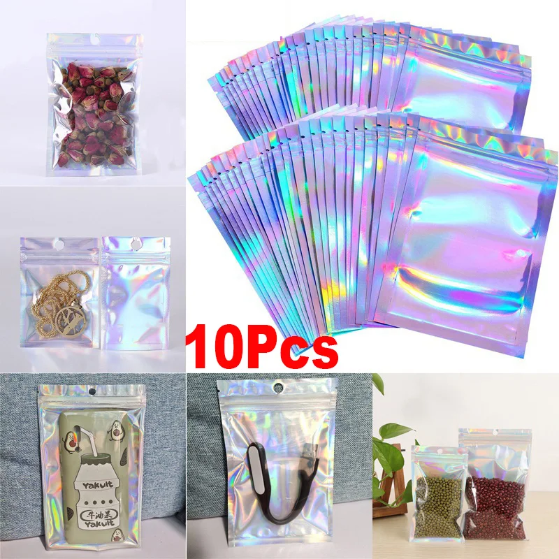 10 шт., голографические пакеты для украшений, из алюминиевой фольги