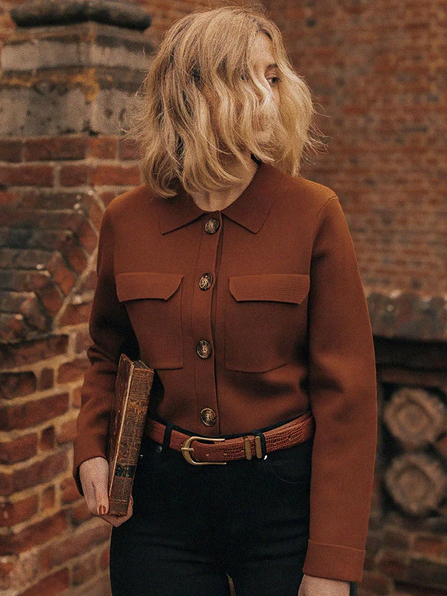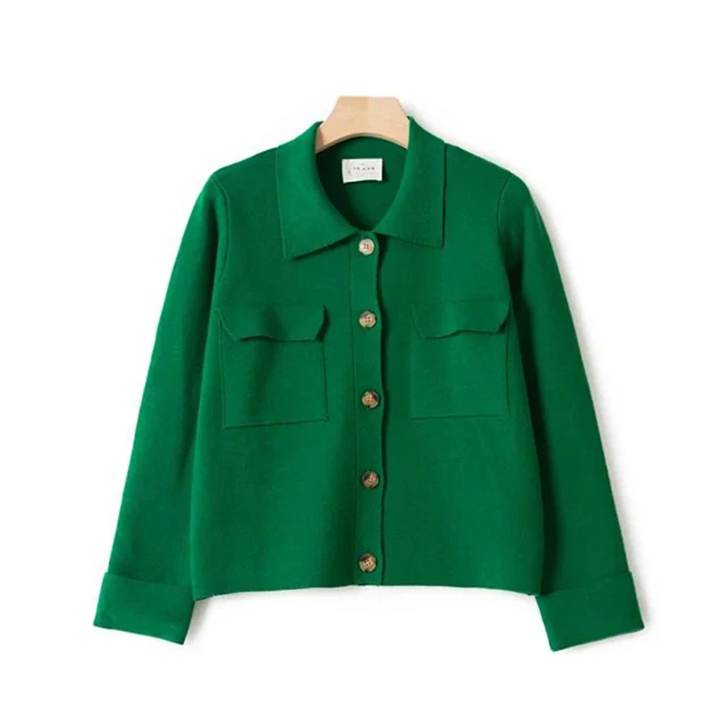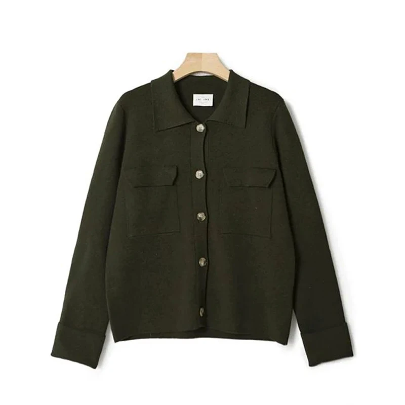 Женские куртки, вязаные шерстяные кардиганы, Дамская рубашка с отло...