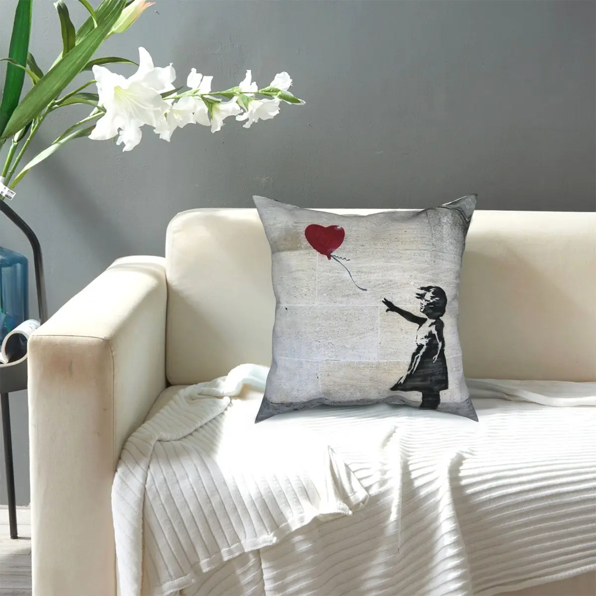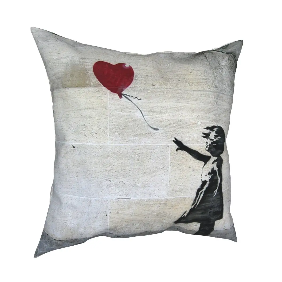 Наволочки с рисунком граффити Banksy's Girl With A Red Подушка с воздушным шаром, 40*40 см
