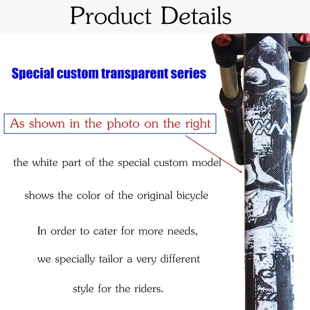Прозрачная модель основана на оригинальном цвете велосипеда, большая площадь показывает, что оригинальные цветные модели рекомендуются для цветовых моделей, эффективно защищают рамку от царапин, поверхность легко моется после разрыва клея нелегко быть оставленным