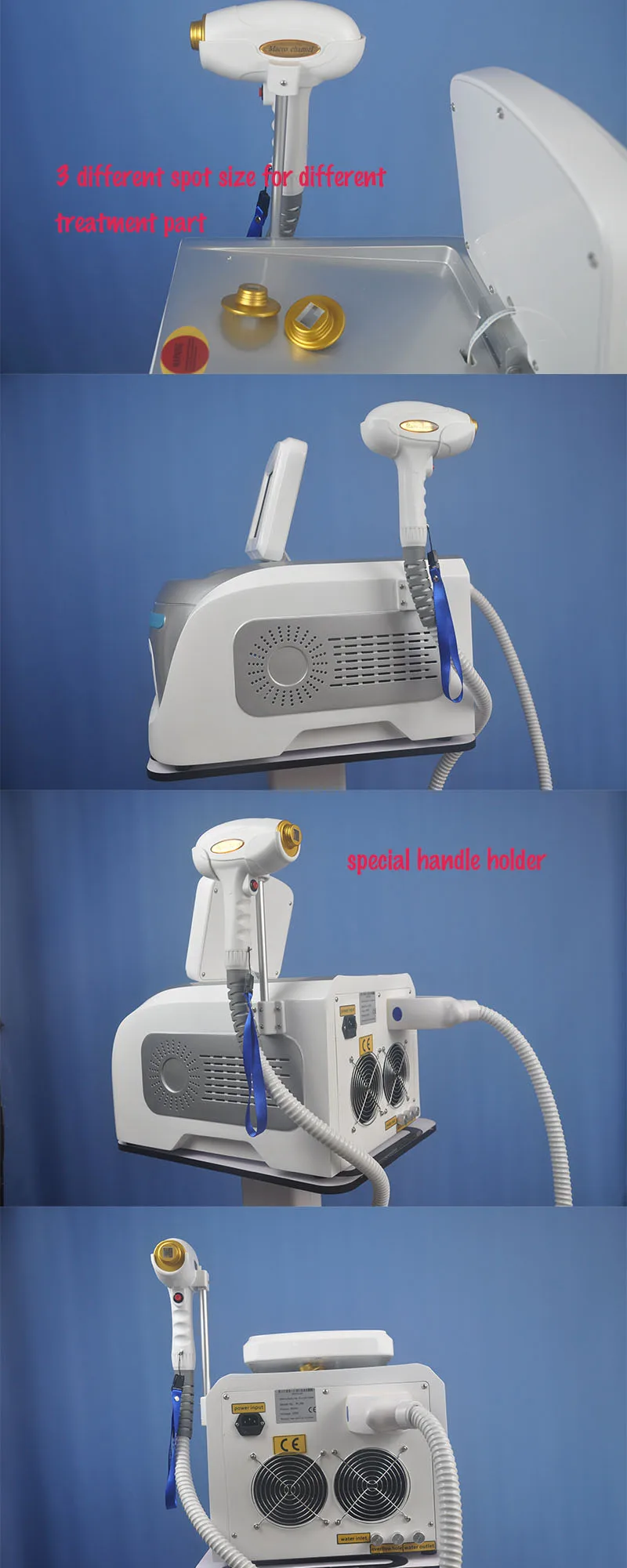 Длина волны 755нм и 808нм и 1064нмДлина волны Alex 755 нм: для широкого спектра типов и цветов волосАлександритовая длина волны обеспечивает более мощную энергию, поглощаемую хромофорой меланина, что делает ее идеальной для широкого спектра типов и цветов волос, особенно светильник-цветные и тонкие волосы.Скорость 808нм Длина волны: половина времени обработкиКлассическая длина волны при лазерном удалении волос, длина волны 810 нм обеспечивает глубокое проникновение волосяного фолликула с высокой средней мощностью, высокой скоростью повторения и большим размером пятна для быстрой обработки.Yag 1064nm Длина волны: специализируется на более темных типах кожиПреимущество длины волны YAG 1064 заключается в том, что нижний меланин поглощает, делая его более темным типом кожи.