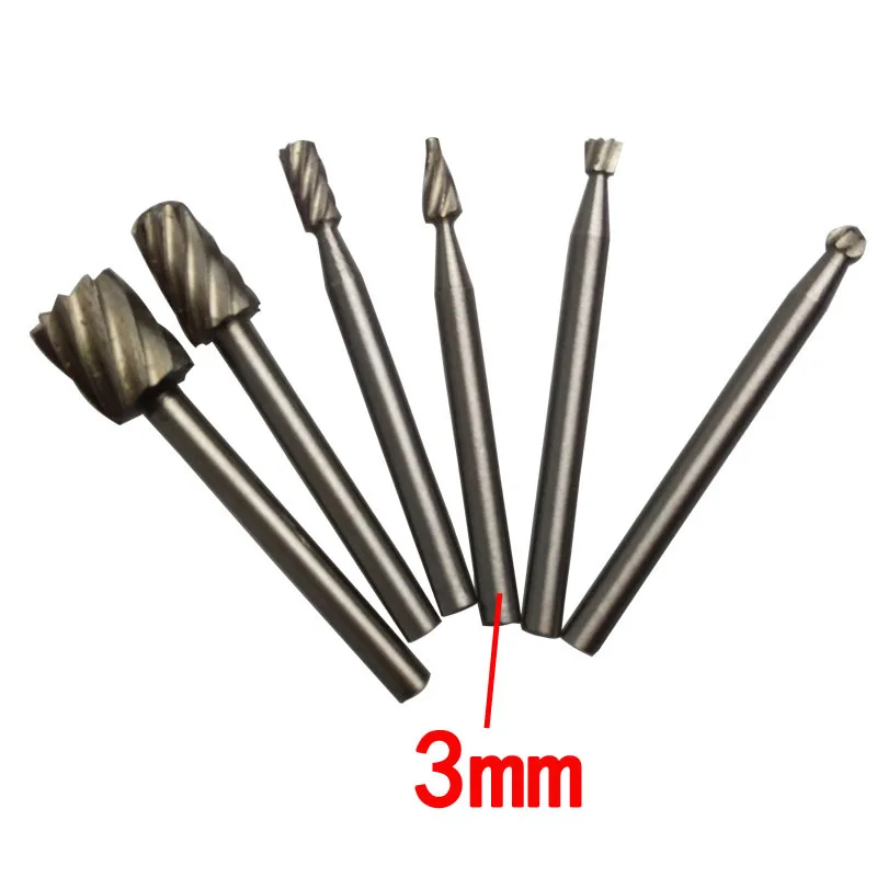 6 шт.компл. 3 мм роторные напильники Высокоскоростная сталь Деревообработка фреза резьба гравировка маршрутизация шлифовальные сверла маршрутизатор