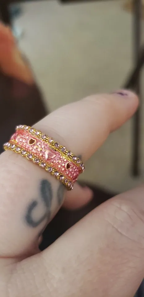 Женское кольцо с розовым опалом и зеленой эмалью, с кристаллами