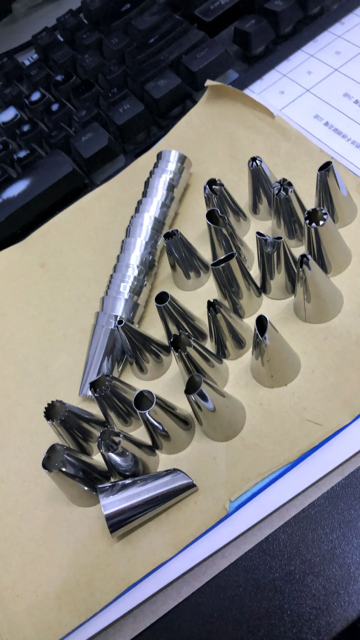 Материал: нержавеющая сталь 430Цвет: серебристыйРазмеры: 1,8 см в диаметре и 3 см в высотуВес: 0,095 кгСписок продуктов: набор из 48 насадки для украшения торта