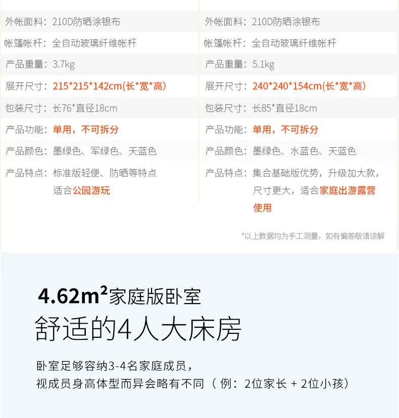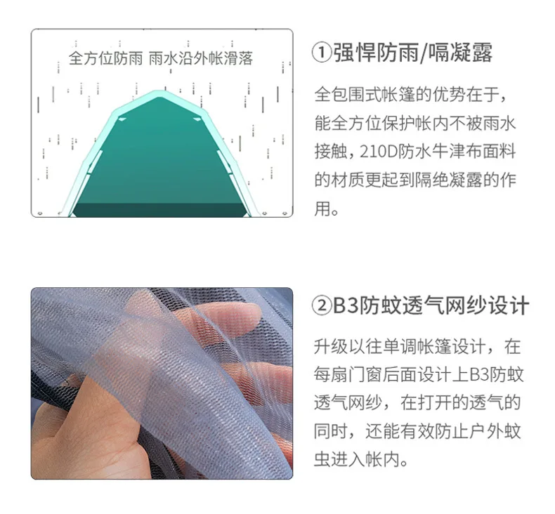 Размеры: 215*215*142 см/240*240*154 см Вес: 3,8 кг/5,1 кг летом не жарко и пропускает воздух, 5 мест открытые окна с защитой от ультрафиолета и защита от солнечных лучей. Защита от дождя, защита от комаров