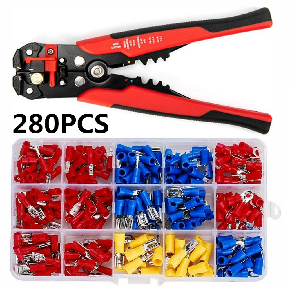 Коннектор для кабеля с нсульатированным покрытием, 280 шт., ОБЖИМНАЯ лопатка для электрических проводов, плоскогубцы, набор инструментов