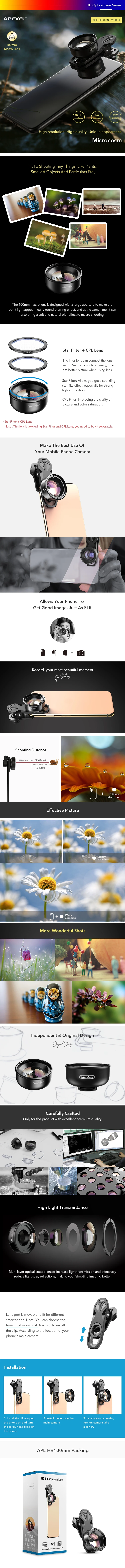 Объектив для телефона APEXEL, HD оптический объектив 100 мм, макроо...