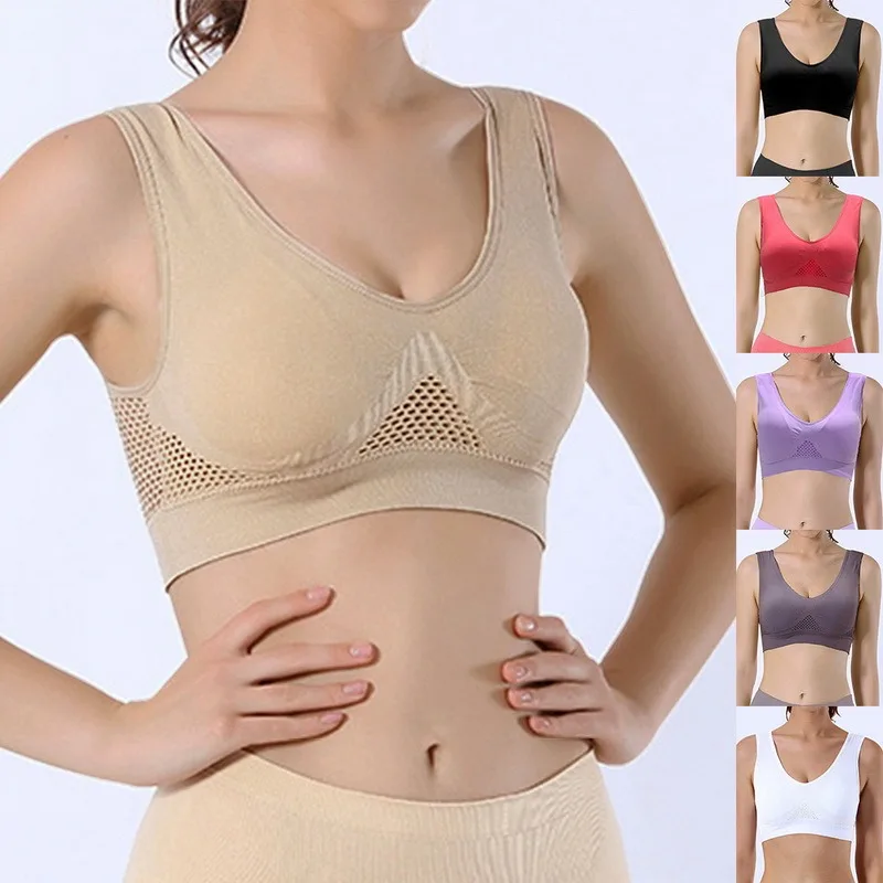 S-6XL женский спортивный дышащий бюстгальтер для йоги с дырочками, жилет для фитнеса и бега, нижнее Белье для сна, укороченный топ с подкладкой, нижнее белье, спортивный бюстгальтер