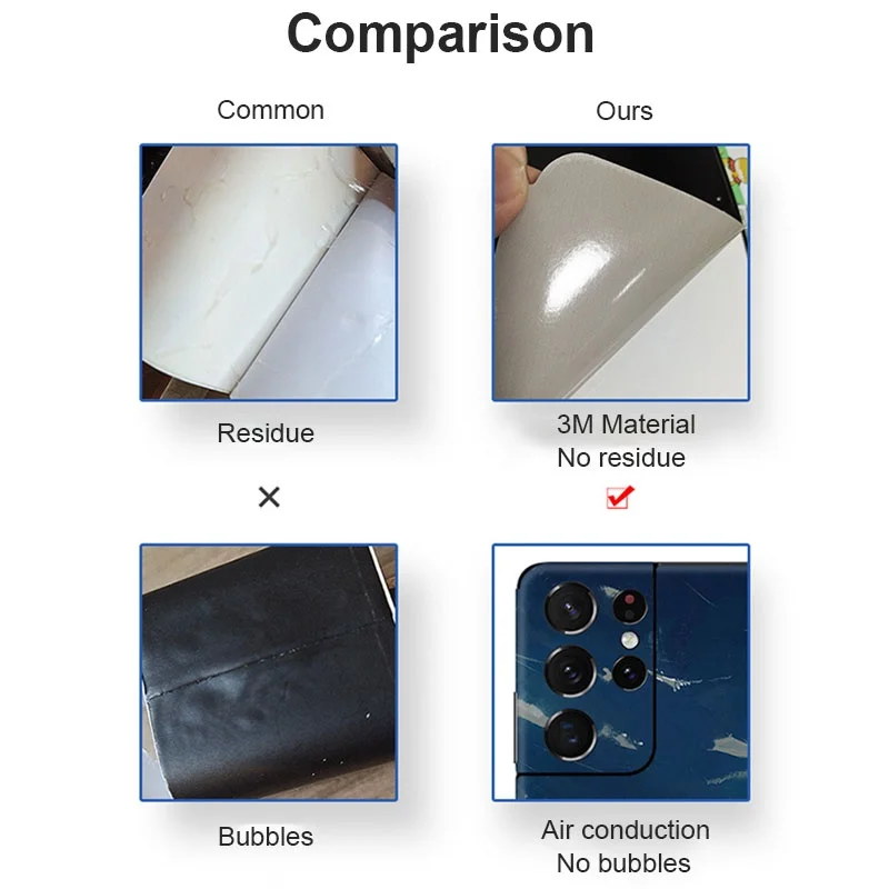 Благодаря запатентованной технологии нанесения клея без пузырей, нанесение кожи гарантировано.