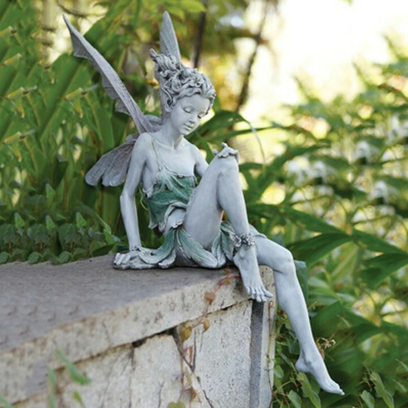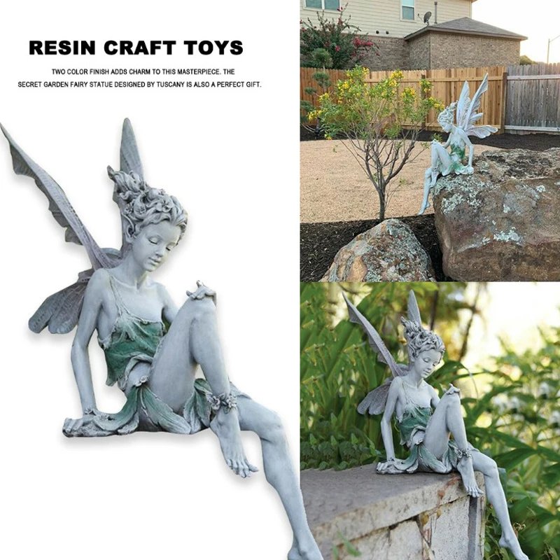 Садовые статуи и скульптуры, цветок, фея, сидячее, как украшение для сада, крылья ангела, полимерные поделки, украшение для дома и улицы